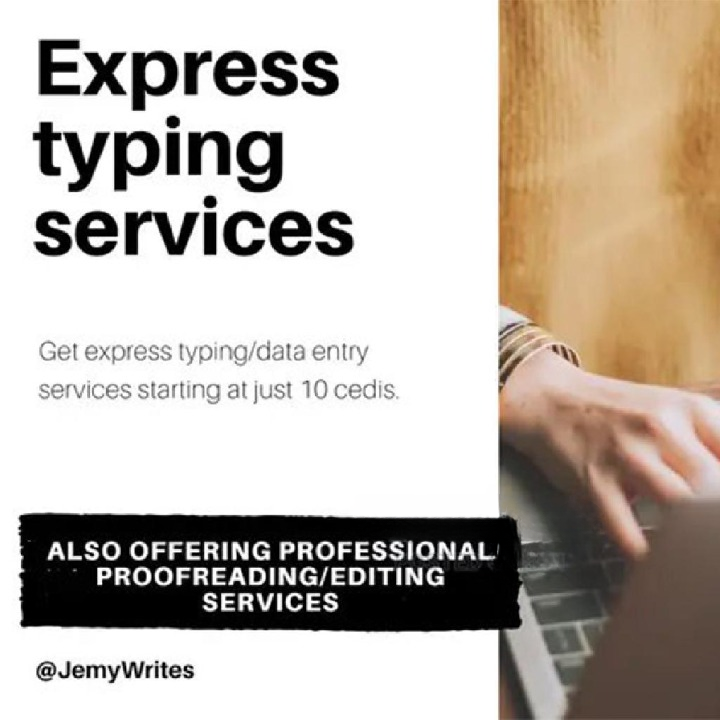 Contact us for your express typing/data entry jobs, starting from as low as 10 ghana cedis.