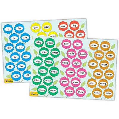 The Jolly Phonics Tricky Word Poster Pack includes two vibrant posters designed to support the teaching and reinforcement of 72 common tricky words. Each poster features 36 words, divided into three sets of 12, with each set in a distinct color to