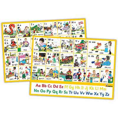 The Jolly Phonics Letter Sound Poster is a single-sheet, vibrant educational chart featuring all 42 letter sounds arranged in seven color-coded groups. Each letter sound includes an engaging illustration that prompts the Jolly Phonics action and sound, making it perfect for teaching and reinforcing phonics skills. This poster is also ideal for revision in older classes, supporting ongoing literacy development.