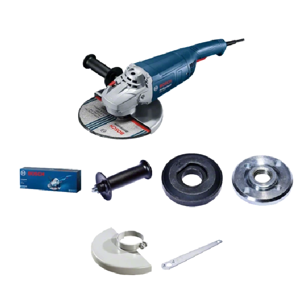 The JTS GWS 2200 Professional Bosch Angle Grinder is designed to deliver high material removal rates, making it ideal for industrial and heavy-duty tasks. Featuring a Bosch patented motor, this grinder offers best-in-class performance, with reduced heating and an extended tool lifetime. The robust components minimize breakdowns, while the motor's improved contact ensures longer carbon brush life. It includes essential accessories such as a locking nut, backing flange, two-hole spanner, and a protective cover for enhanced safety and convenience. This tool provides powerful performance and durability for demanding applications.