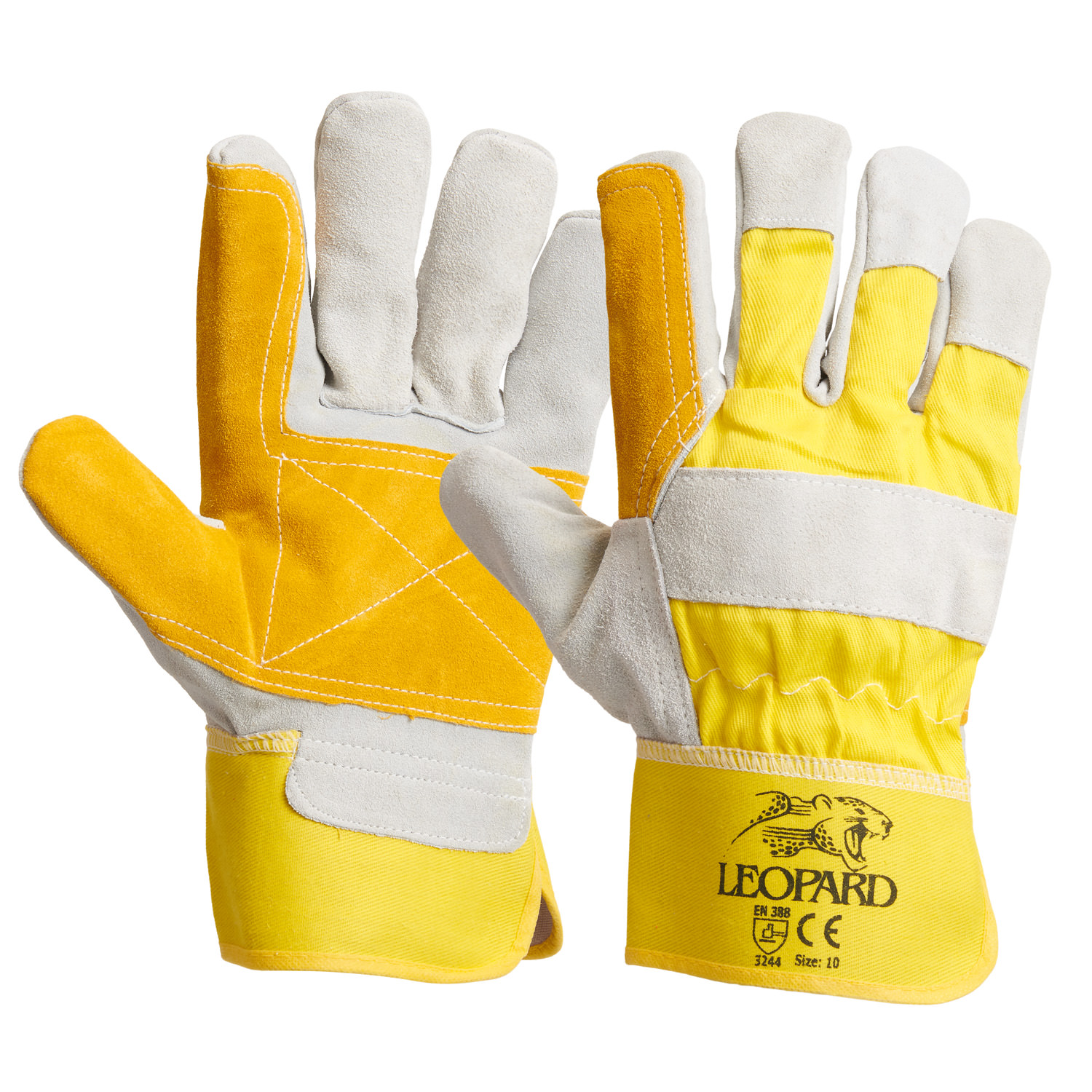The JTS Vaultex Double Palm Leather Gloves are designed for tough industrial applications, offering exceptional durability and protection. Made from grey/yellow cowhide split leather, these rigger gloves feature reinforced palms, thumbs, and index