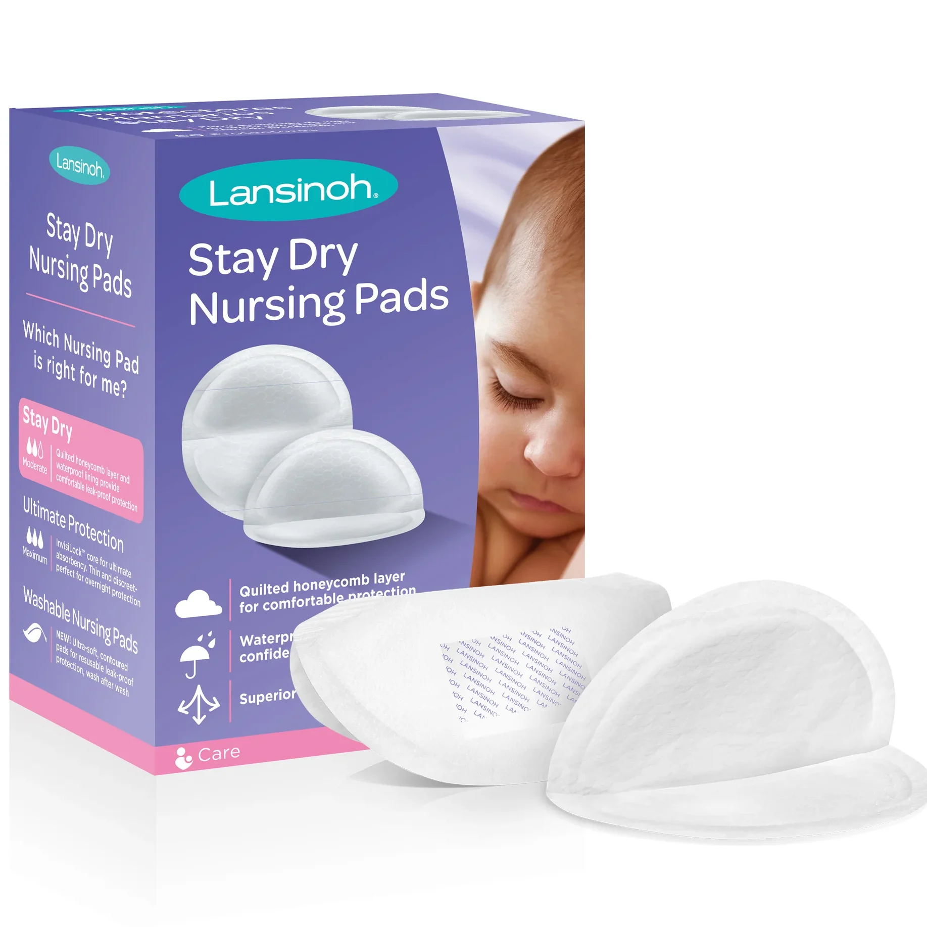 Stay dry and confident all day and night with Lansinoh Stay Dry Nursing Pads. Designed for new moms, these disposable pads are super absorbent, discreet, and convenient for use at home or on-the-go. Each pad is individually wrapped, with a thin co