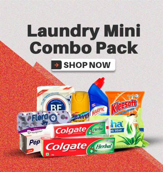The Laundry Mini Combo Pack offers a curated selection of everyday essentials for personal hygiene and household cleaning. This convenient bundle includes Pepsodent White Toothpaste (130g), BelPak Comfort Toilet Roll, Medisoft & Geisha Soaps (4 ba