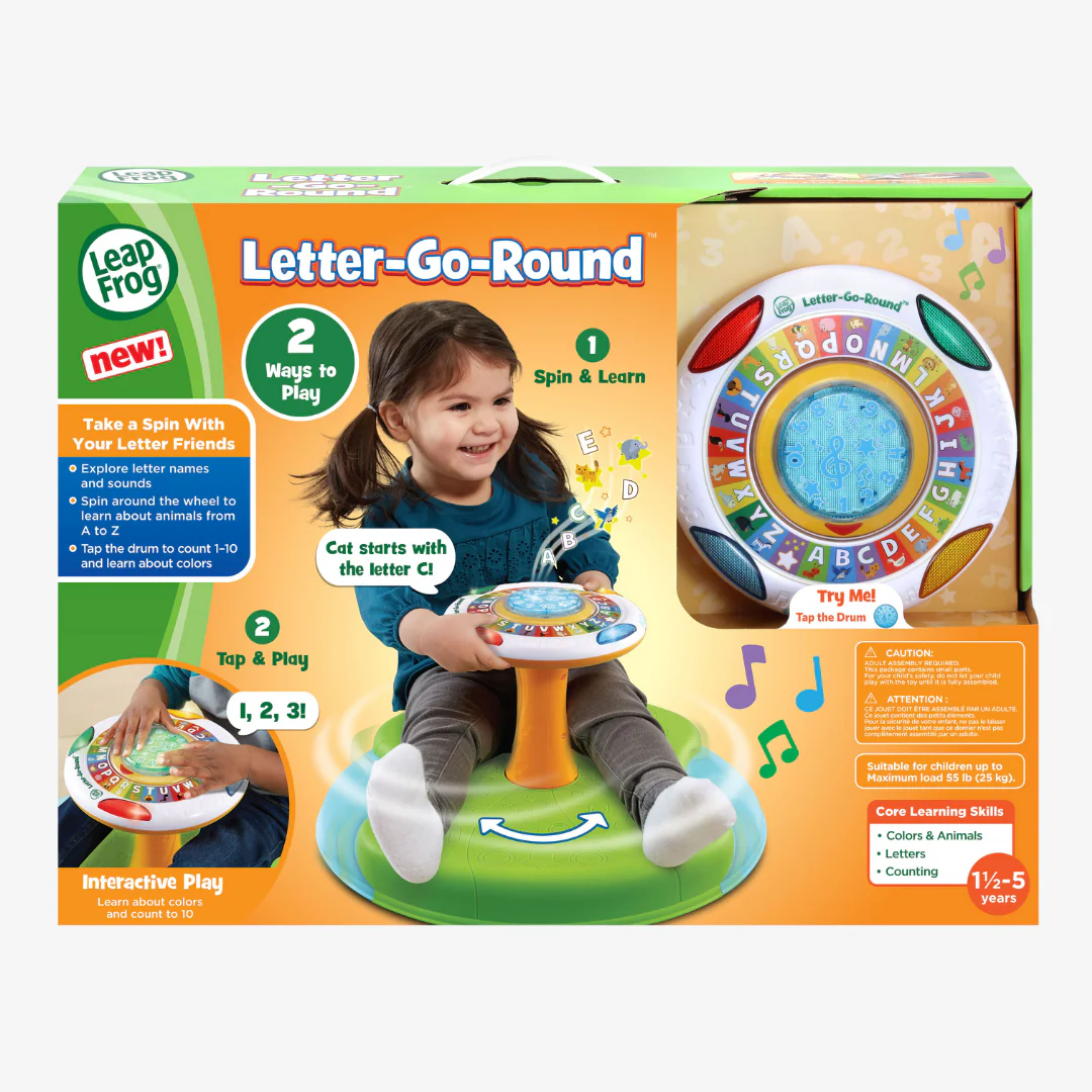 Get ready for a whirling, twirling adventure with the LeapFrog Letter Go Round! Designed to keep little ones active and entertained, this exciting ride-on toy introduces letters, numbers, colors, and animal sounds in a playful, hands-on way. As ch