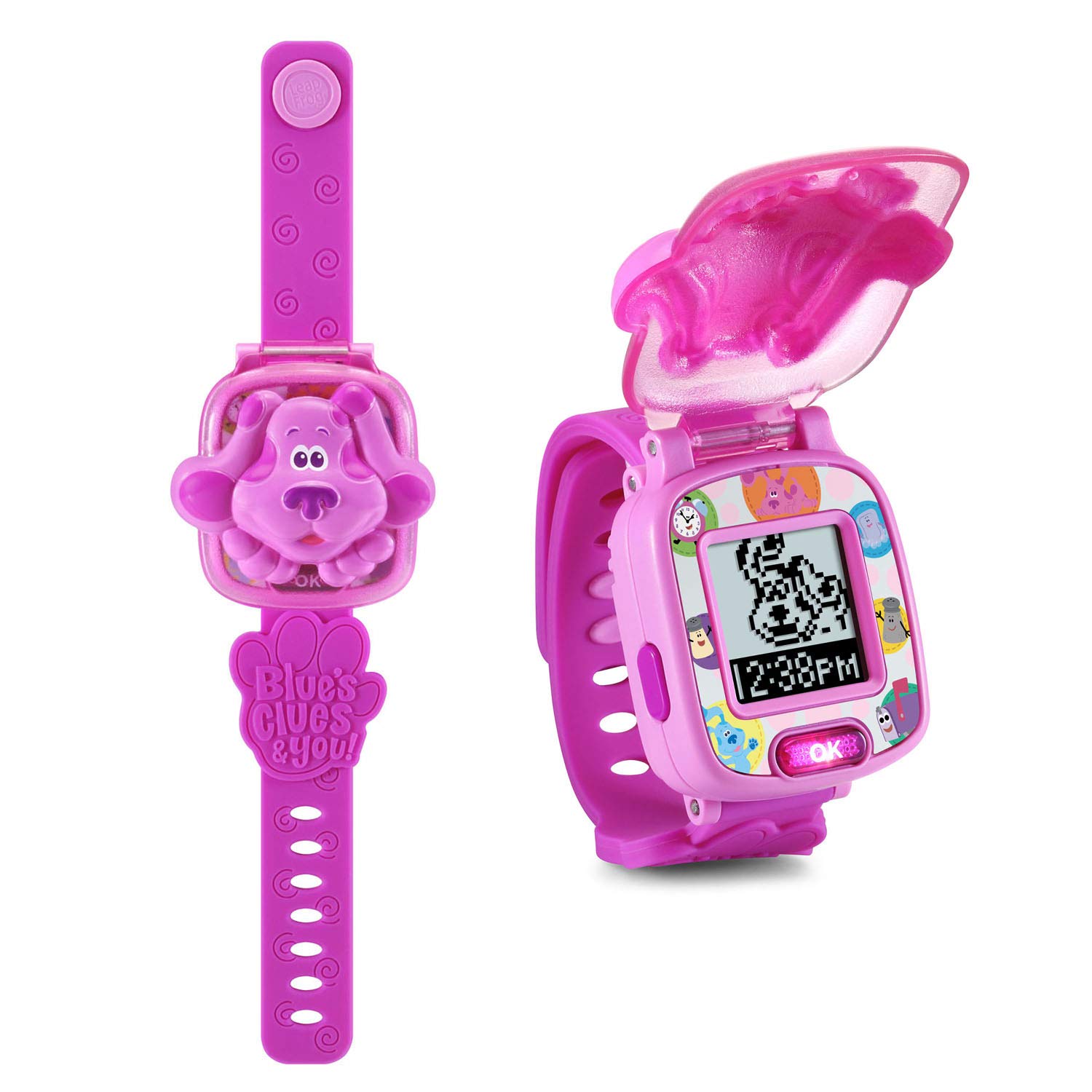 Bring learning on the go with the LeapFrog Magenta Learning Watch, inspired by Blue’s Clues & You!. This interactive wristwatch lets children play engaging games, explore time concepts, and build daily habits—all while enjoying familiar voices and barks from Magenta.