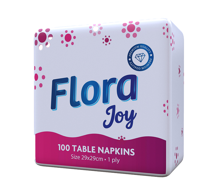 Distributed by Lesfam, Flora Joy Table Napkin 29 x 29cm delivers everyday convenience with its soft, 1-ply design and excellent absorbency. Perfect for meals, parties, and casual gatherings, these disposable napkins offer reliable performance and