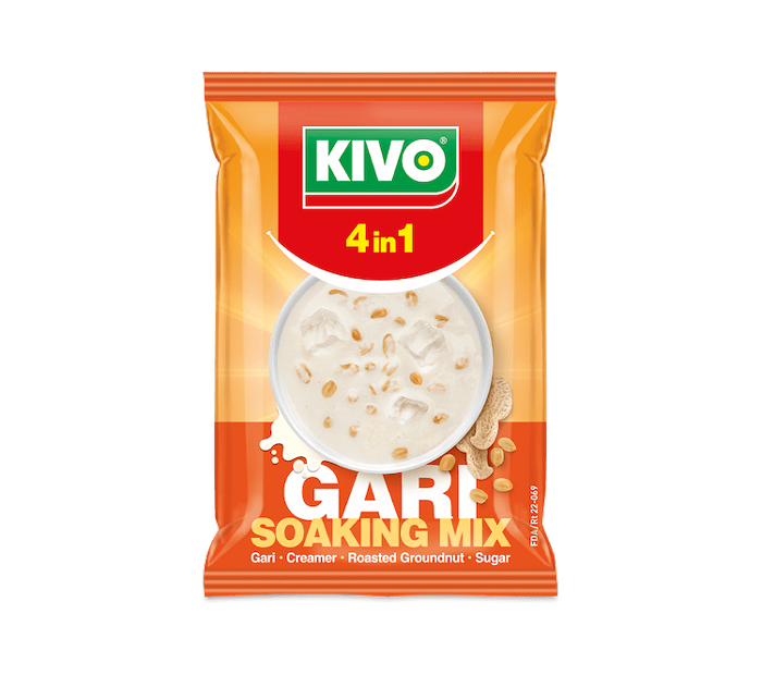 Distributed by Lesfam, Kivo 4 in 1 Gari Soaking Mix 125g combines gari, sugar, creamer, and groundnut into one easy-to-use mix. Perfect for a quick, delicious snack or meal, this blend offers balanced flavors and creamy texture without the hassle