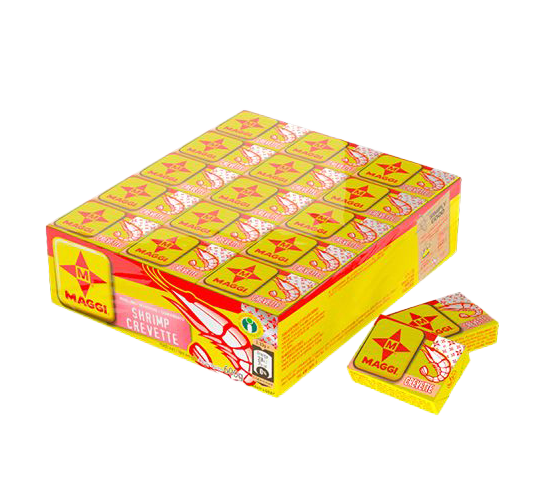 Distributed by Lesfam, Maggi Shrimp Tablet 60 x 10g is a savory seasoning tablet made with real shrimp flavor, fortified with iron, and blended with iodized salt and mixed spices. Perfect for enhancing the taste of soups, stews, sauces, and rice d