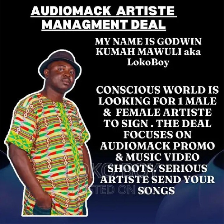Conscious world is a record label we target promotions and branding of artiste , we are looking to make you the next star