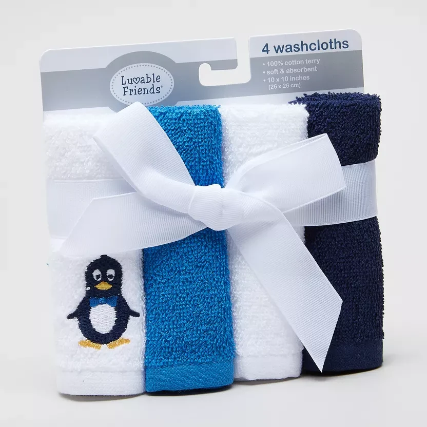 Make bath time more enjoyable with these ultra-soft Luvable Friends washcloths. This practical 4-pack features premium 100% cotton cloths that are gentle enough for newborn skin yet durable for everyday use. The generous 10"x10" size provi