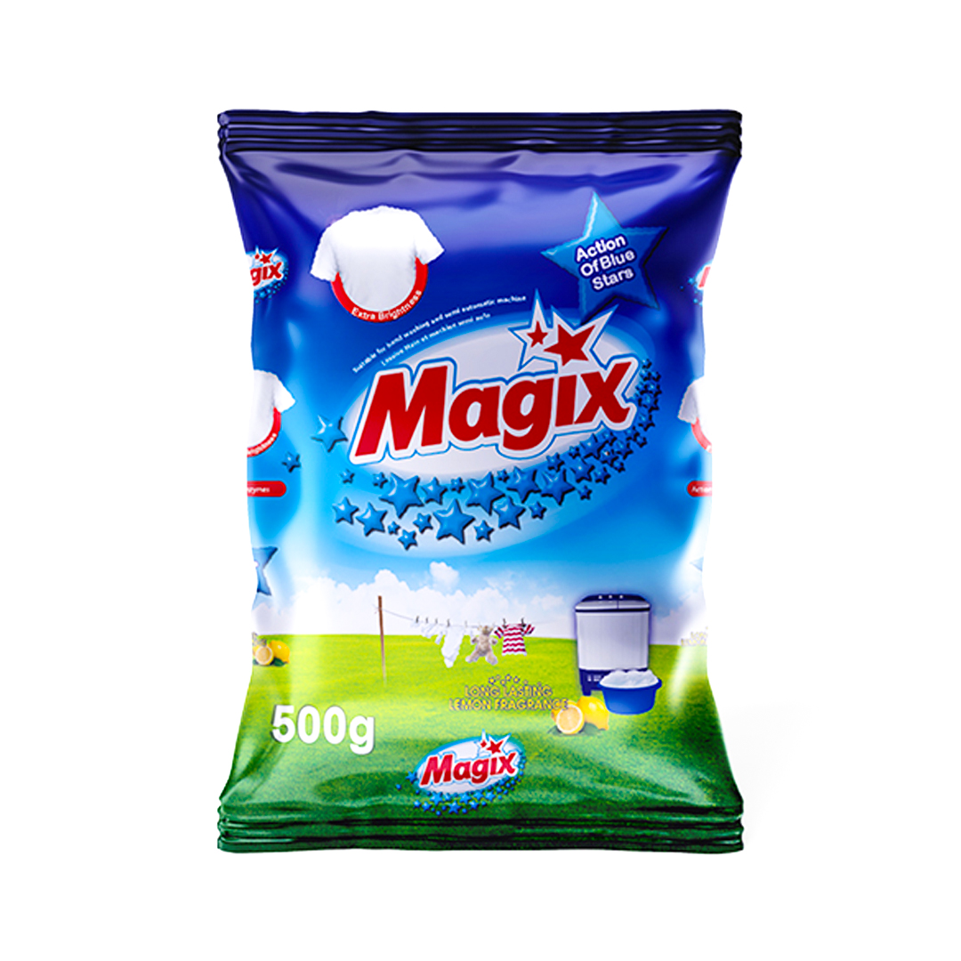 Keep your laundry fresh, bright, and impeccably clean with Magix Washing Powder. Specially formulated to tackle even the most stubborn stains — from grease and grass to coffee and everyday dirt — this advanced detergent works deep into fabric