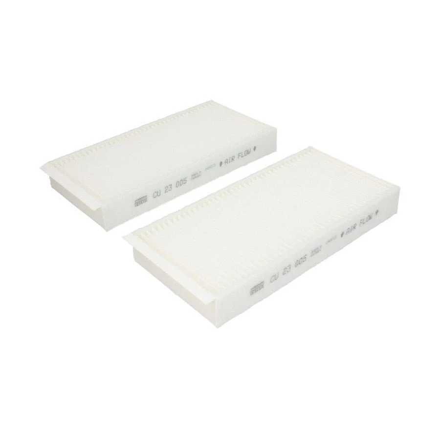 The Mann Cabin Air Filter Set - CU 23 005-2 (64116823725) ensures clean, fresh, and allergen-free air inside your vehicle, providing almost 100% protection against pollen, diesel soot, and tire abrasion particles. Its high-quality pleated design g
