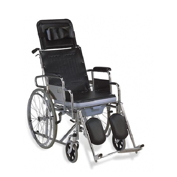 The Manual Longback Reclinable Commode Wheelchair is expertly designed to enhance comfort and versatility for individuals requiring extended periods of seating. Its reclining backrest offers infinite angle adjustments up to 180°, allowing users t