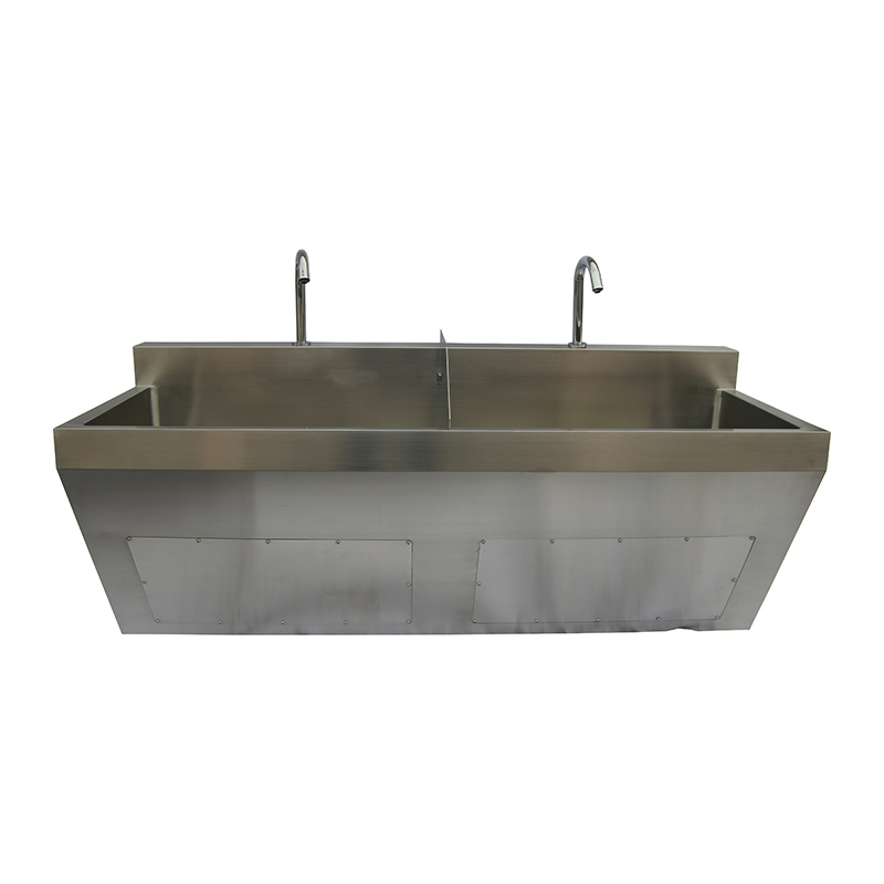 The Stainless Steel Medical Scrub Sink is designed for healthcare environments requiring high standards of hygiene. Made from SUS 304 stainless steel with an 18-gauge (1.2mm) thickness, it offers exceptional strength and corrosion resistance. The