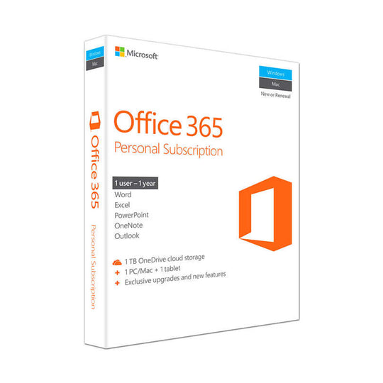 Microsoft 365 Personal is an all-in-one productivity suite for 1 user on 1 PC/Mac + 1 tablet, including Word, Excel, PowerPoint, OneNote, and Outlook with AI-powered Copilot assistance. Comes with 1TB OneDrive cloud storage, offline editing, and r