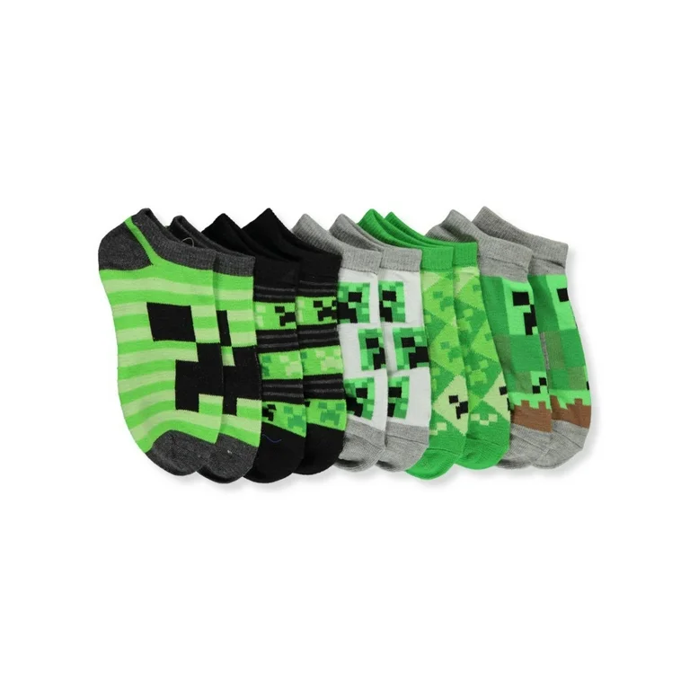 Level up your sock game with these officially licensed Minecraft no-show socks! This exciting 5-pack features vibrant designs inspired by the blocky world of Minecraft, perfect for young gamers who want to show their creativity even when they'
