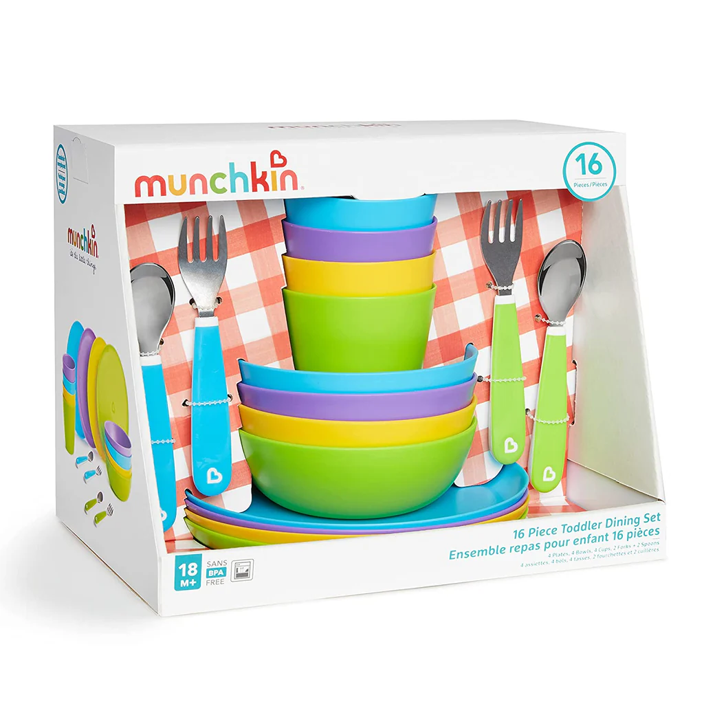 Transform mealtime into a fun, safe, and educational experience with the Munchkin 16-Piece Toddler Dining Set. Designed specifically for toddlers, this complete dining set includes perfectly sized plates, bowls, cups, and utensils that encourage s