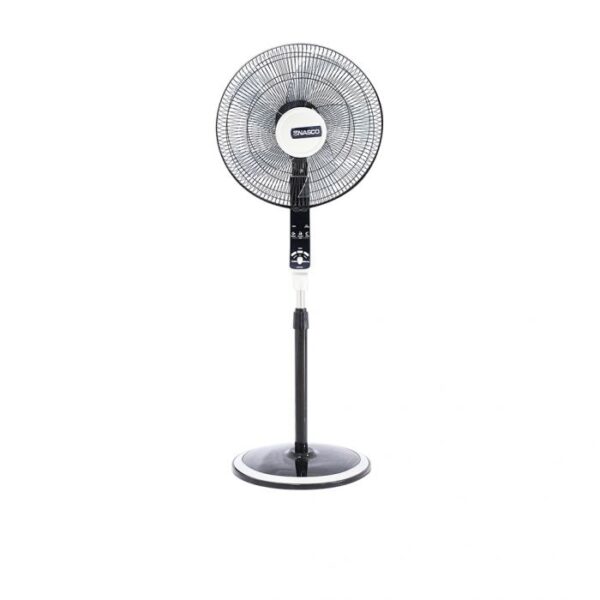 Enjoy personalized cooling with the Nasco NA-FS1690B. This 16-inch fan comes with a remote control and an 8-hour timer for ultimate convenience. Its 5 fluid-dynamics blades and silent care technology deliver strong, quiet airflow. The stepless speed regulation and 55° oscillation panel allow you to direct the breeze exactly where you need it, making it ideal for bedrooms and living areas.