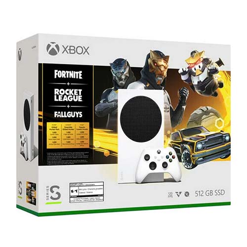 Experience next-gen gaming with the New Xbox Series S Gilded Hunter Bundle, featuring exclusive in-game cosmetics and virtual currency for popular titles like Fortnite, Rocket League, and Fall Guys. This all-digital console delivers lightning-fast load times, Quick Resume, and smooth gameplay up to 120 FPS, powered by the innovative Xbox Velocity Architecture. Dive into hundreds of optimized games from four generations of Xbox with stunning graphics and enhanced performance. Perfect for gamers looking for affordable next-gen speed and exclusive digital content. Get ready to jump into the action with Xbox Series S and your favorite free-to-play games downloaded instantly.