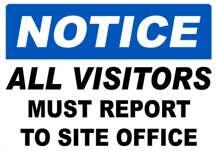 The clear messaging enhances compliance with site entry procedures and improves overall visitor safety and accountability.
