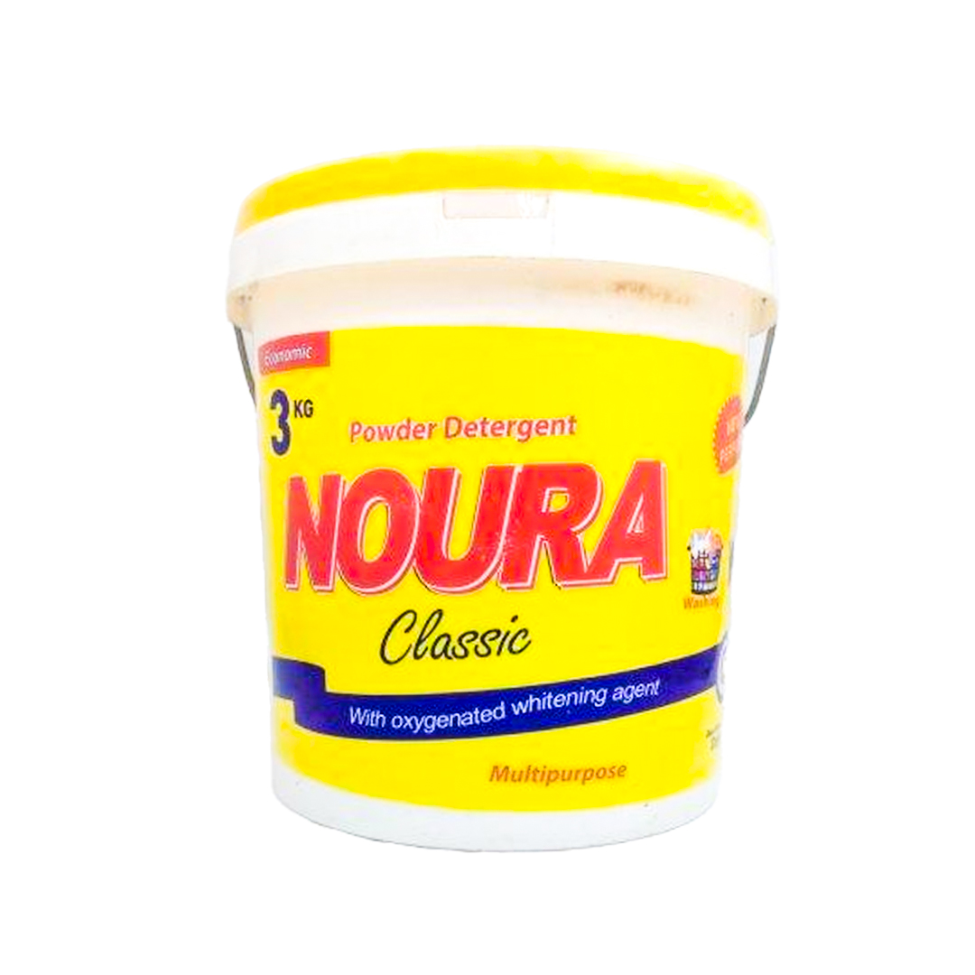 Noura Washing Powder Bucket delivers powerful and efficient cleaning in a large 3kg pack, perfect for meeting the demands of busy households. Formulated with advanced stain-removal agents, this detergent penetrates deep into fabrics to remove dirt
