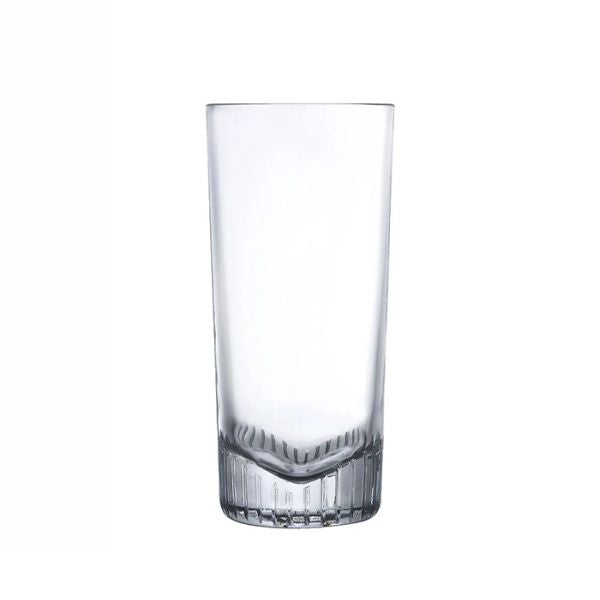 Elevate your cocktail presentation with this 450ml glass featuring refined vertical cuts and a dramatic V-shaped base. Crafted from premium lead-free crystalline glass, it's perfect for highball cocktails, mocktails, or layered drinks with visual flair. Available in a set of six.