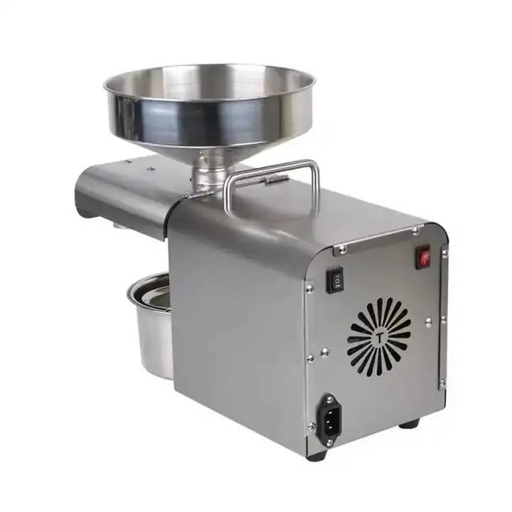 This oil press machine is a compact yet powerful solution for extracting oil from a wide range of seeds and nuts, including peanuts, coconuts, olives, sesame, sunflower seeds, and more. With a maximum capacity of 5kg/h, the unit operates on 800W o