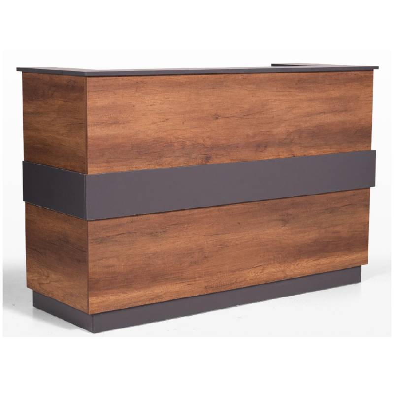 Crafted from melamine-coated wood, the OSCAR Z desk features a warm brown and grey finish that complements both traditional and contemporary interiors. While it does not include an integrated worktop, its seated design offers ergonomic comfort for front desk staff handling check-ins, inquiries, or administrative duties.