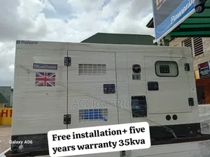 The Perkins 35KVA Diesel Generator is a heavy-duty Diesel Generator engineered to deliver consistent, uninterrupted power for homes, offices, shops, and light industrial facilities. With a rated capacity of 35 KVA (28.0 KW standby power), it provides ample electricity to run multiple heavy-duty appliances and equipment simultaneously. Built around a robust, fuel-efficient diesel engine, this generator is designed for long operational hours with minimal maintenance. The 100% copper winding engine ensures superior heat dissipation, extended motor lifespan, and improved electrical efficiency even during extended operation. Backed by a 5-year manufacturer warranty, you can purchase with complete confidence in its build quality and longevity. The Perkins brand is renowned for engineering excellence, fuel efficiency, and reliable after-sales support across Ghana and West Africa. Ideal for businesses and households that require dependable backup power or off-grid electricity, it handles multiple loads simultaneously — from air conditioners and refrigerators to power tools and industrial equipment. Order today and experience the reliability of a generator built to last.