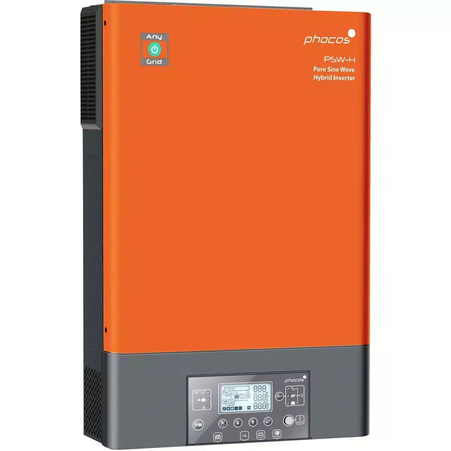Power your home or business with the Phocos Any-Grid™ PSW-H 3kW Inverter/Charger, a feature-rich hybrid solution designed for flexible energy access. Whether you're on-grid, off-grid, or somewhere in between, this inverter delivers true sine wave output, grid-bypass capabilities, and advanced MPPT solar charging—all in one robust unit.