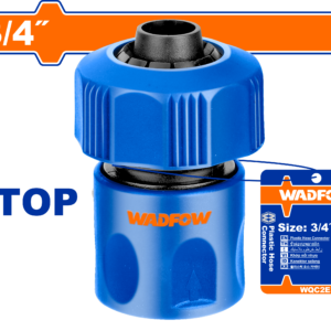3/4" quick connector with water-stop function. Constructed from ABS, PP, and POM. Net weight 38g. Designed to provide fast, secure connections for larger garden hoses. Delivered with paper card packaging.