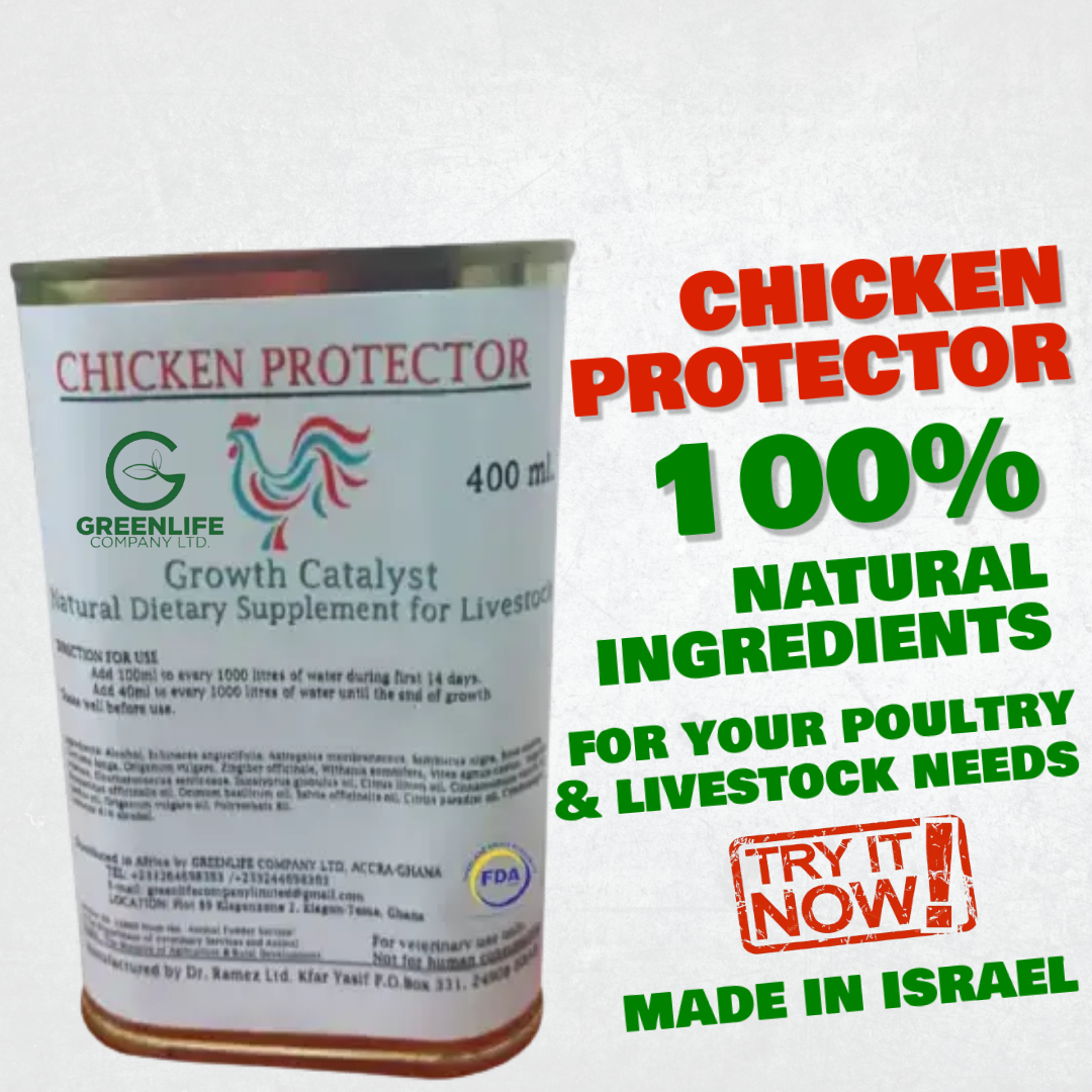 This all-natural dietary supplement, made from a blend of essential oils and medicinal plant extracts sourced from Israel, is designed to promote healthier, faster-growing poultry and livestock without the use of antibiotics, vitamins, or chemical additives. Rich in antibacterial, antiviral, and antifungal properties, it enhances immunity, improves feed conversion, supports better brooding, and ensures consistent weight gain and meat quality. Ideal for broilers, layers, ducks, guinea fowl, turkeys, quail, pigs, rabbits, and more, it is effective throughout all growth stages and especially beneficial during brooding. With oral and inhalation administration options, this supplement contributes to lower feed costs, reduced mortality, no withdrawal period, and improved egg quality?delivering golden brown shells and vibrant yellow yolks in layers. Trusted by 75% of farmers and available in 100ml and 400ml packages, it offers a reliable, natural alternative for boosting productivity and profitability in poultry and livestock operations.