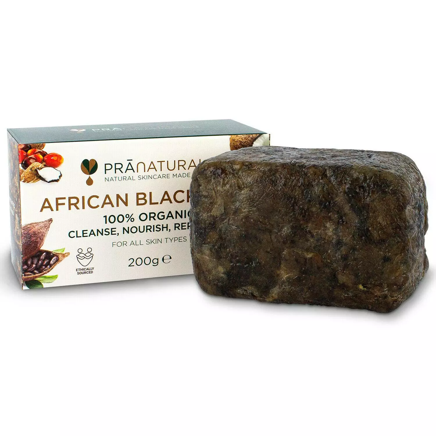 Authentic Amonkye soap: raw shea butter, coconut oil, cocoa pod ash, palm kernel. Deep cleanses, nourishes, fights acne, eczema, aging. 100% natural, vegan. 200g bar. Gentle exfoliation. Ideal all skin types. Order from Milton Keynes.
