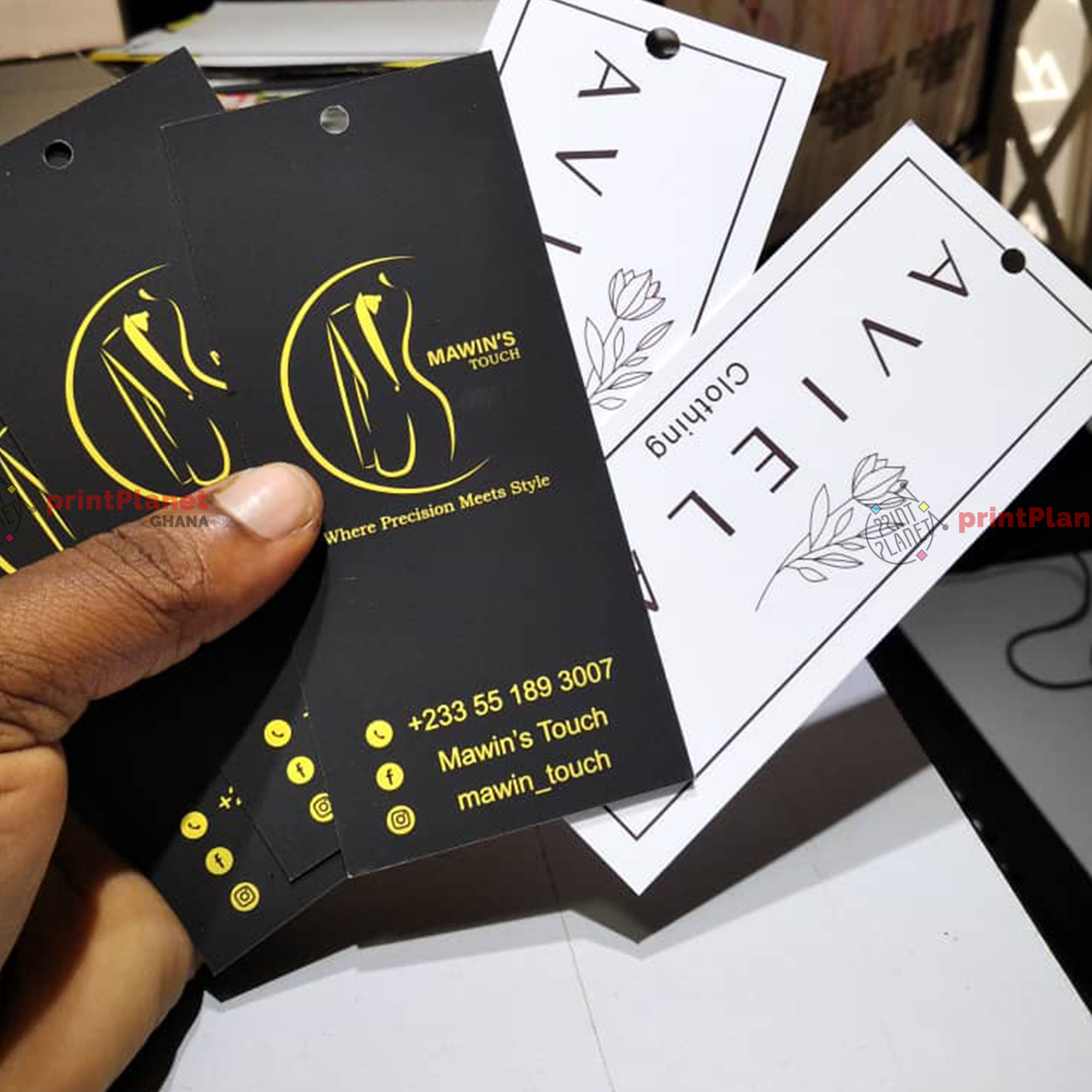 Make your fashion brand stand out with custom paper tag labels from Print Planet Ghana. We design and print high-quality, personalized clothing paper tags that give your apparel a professional, luxury look — helping you communicate your brand identity and style effortlessly.