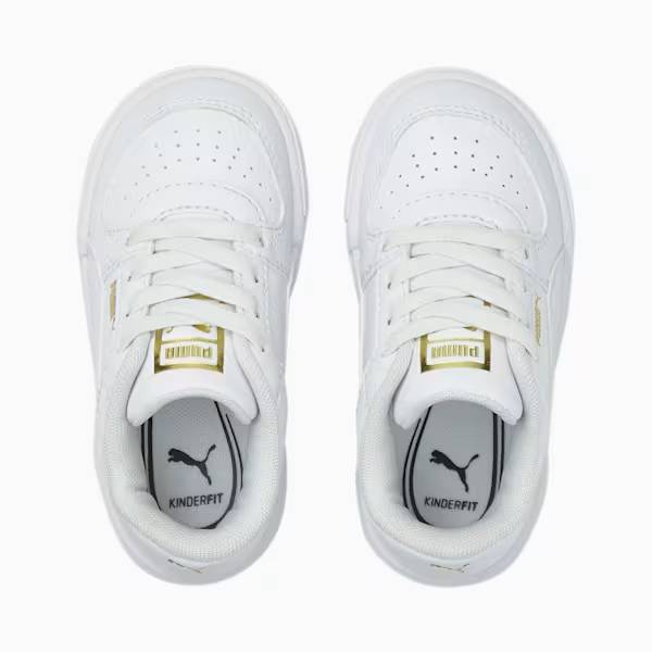 Dress your little one in timeless style with these pristine white Puma Kinderfit sneakers. Designed for toddlers taking their first steps, these shoes combine Puma's athletic heritage with child-friendly features that support healthy foot deve