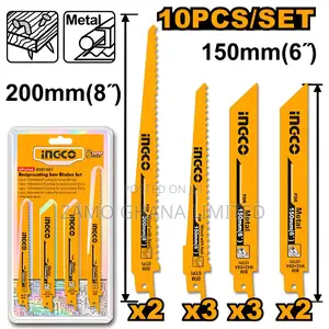 "10pcs/set 3pcs 150191.26T,cutting for wood with nail 2pcs 150190.9218T,cutting for metal 3pcs. This jigsaw and reciprocating saw provides precise curved and straight cutting in wood, metal, plastic, and ceramic tiles for carpentry, plumbing, and electrical installation. Ingco jigsaws (400W–800W, orbital action, variable speed) accept standard T-shank blades for wood and metal cutting. Wadfow jigsaws (400W–580W) deliver smooth cutting with dust blowing and adjustable base plate. Total and Makute jigsaws (570W) include blade guide bearings for accurate, tear-free cuts. Ingco cordless jigsaws (20V) and cordless reciprocating saws (20V) provide flexible cutting on site without power cables. Compatible blade sets include wood, metal, bi-metal, and ceramic-cutting blades.