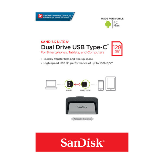 128GB reversible speed shuttle — SanDisk USB 3.1 A + C; 150MB/s read; Memory Zone app. OTG Android. For Pixel 8 to PC. Ideal for Accra content nomads—instant cross-platform. In stock with same-day delivery for dual dominance!