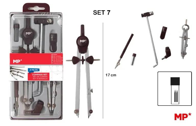 This compass set includes essential tools for accurate circle drawing and measurements, perfect for students, architects, and artists. Made with durable materials, it ensures precision and ease of use for geometry, drafting, and design projects. Ideal for school, office, or creative work.