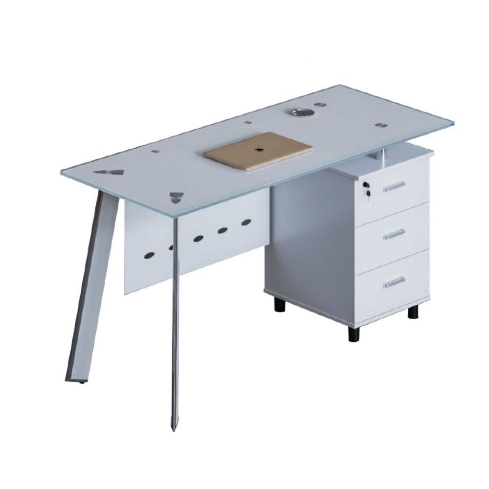 The SHIRAZ Executive Desk (White Edition) delivers a clean, contemporary look for modern workspaces. With its 160cm x 80cm surface, this executive desk combines elegance and durability through a premium fabric-covered body and a tempered glass tray top that resists scratches and adds a sleek finish.