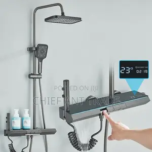 This complete shower system provides a luxurious, hygienic bathing experience for residential and hotel bathrooms. The 90×90cm and 120×80cm glass shower cubicles feature toughened safety glass panels with aluminium profiles and ABS shower trays. The 4-in-1 piano digital thermostatic shower includes a rain head, hand shower, body jets, and LED temperature display. The concealed shower mixer provides a flush-finish wall-mounted control. The digital LED colour-changing shower head (5-spray mode, high pressure) provides a spa-quality experience. Shower steam cubicles integrate a steam generator for home spa use. All shower systems are brand new with 2–4 year warranty.