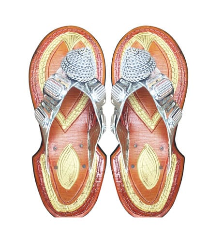 Shine bright with these silver Ahenema sandals featuring metallic silver accents and traditional design elements. The reflective surface catches light beautifully, making them perfect for evening events and celebrations.