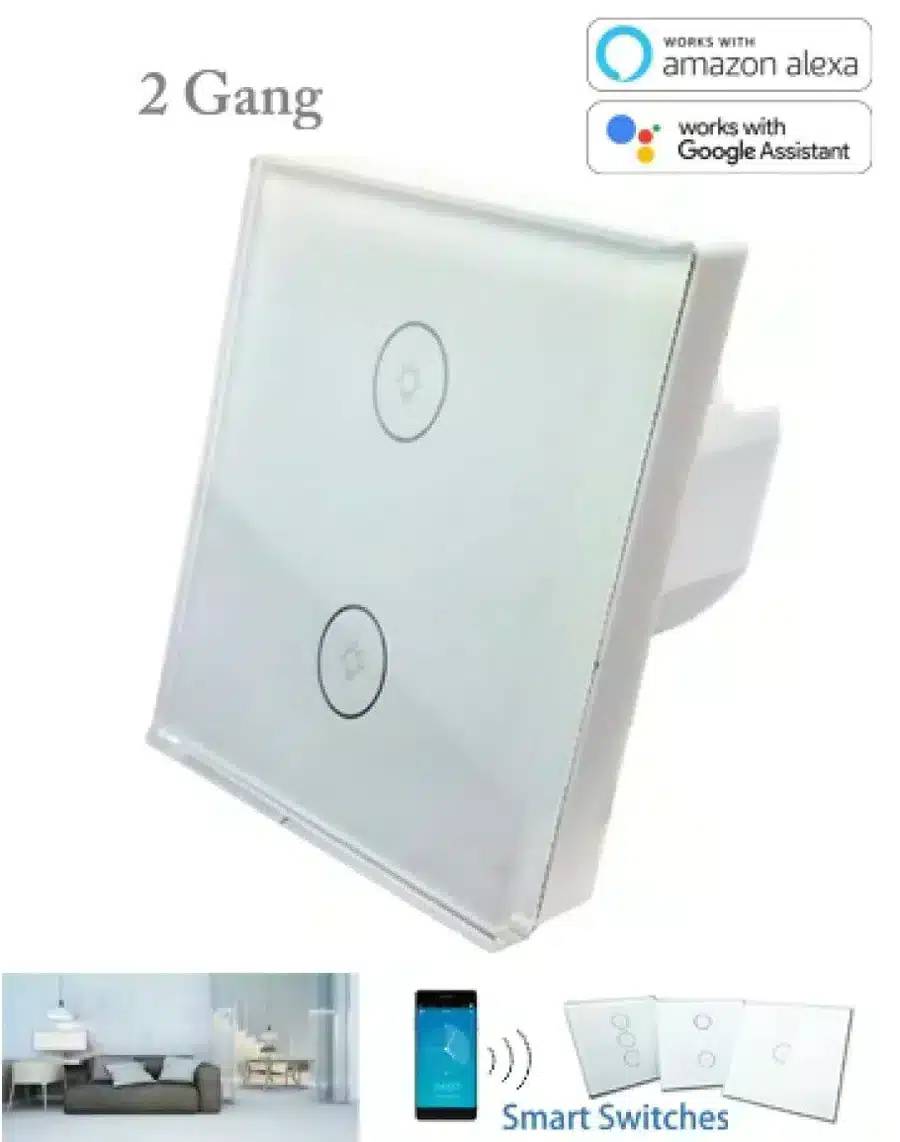 Transform your home lighting system with the Smart Wi-Fi 2-Gang Light Switch, designed for modern convenience and energy efficiency. Control two separate lighting circuits remotely or with voice commands, integrating seamlessly wi