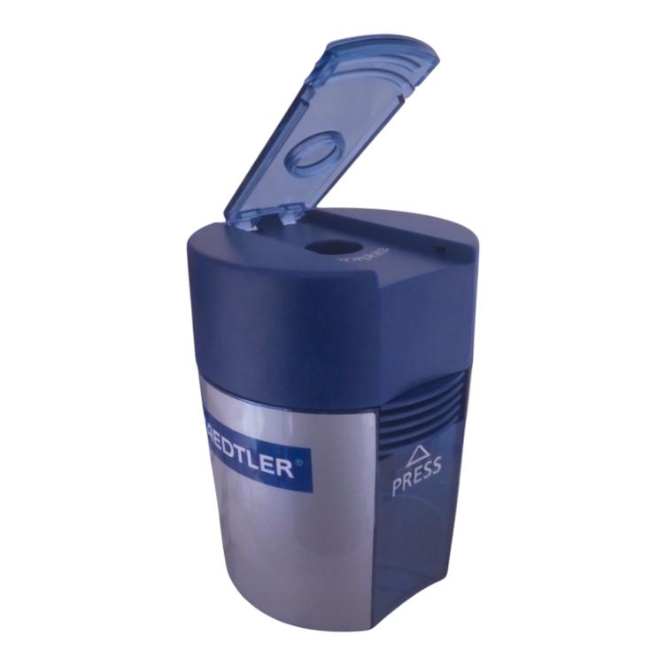 Enjoy a perfect point every time with the Staedtler Metal Pencil Sharpener. Its high-precision, durable metal blades provide a long-lasting sharp edge, while the transparent plastic container collects shavings for a clean and tidy workspace. A com