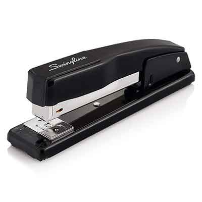 This stapler uses strong force to push staples through paper, securely fastening multiple pages together. It can also be used for tacking by opening the stapler to attach documents to flat surfaces, making it a versatile and essential office and s
