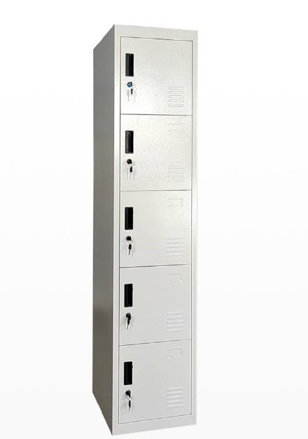 Keep your belongings safe and organized with this durable Steel Locker featuring 5 individual doors for secure storage. Crafted from high-quality steel and finished with an electrostatic powder coating in sleek grey and white, this locker is built to last and resist scratches and corrosion.