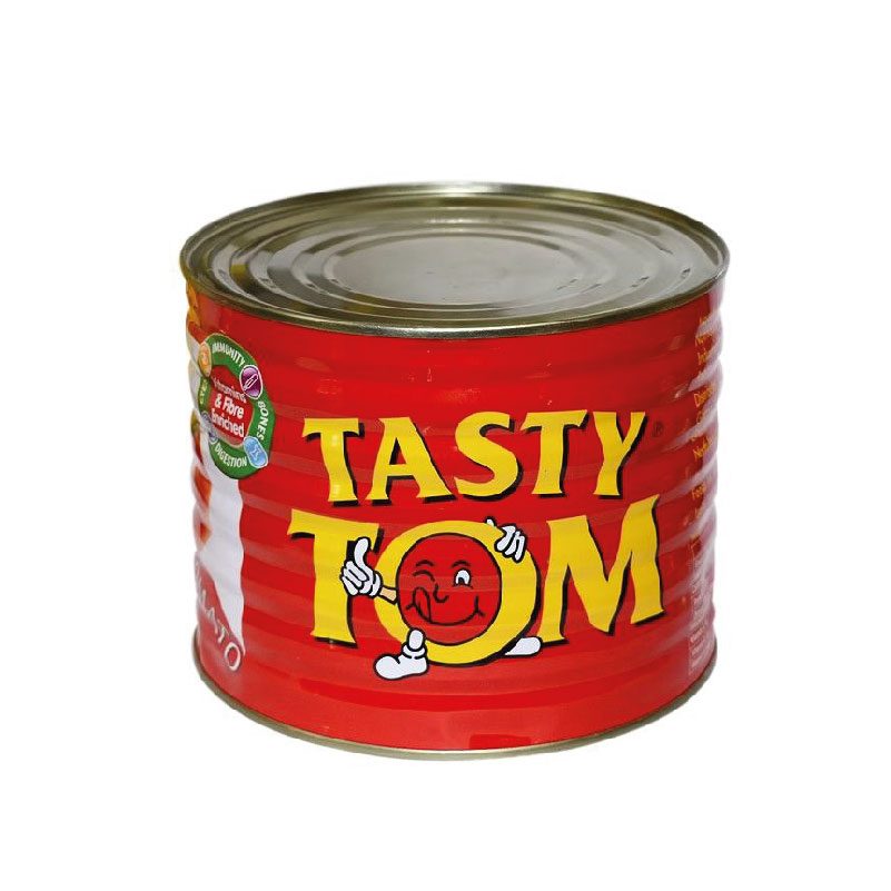 Tasty Tom Tomato Paste is a rich, flavorful cooking ingredient made from sun-ripened tomatoes and carefully processed to deliver a vibrant red color, thick consistency, and authentic taste?making it perfect for enhancing stews, soups, sauces, and