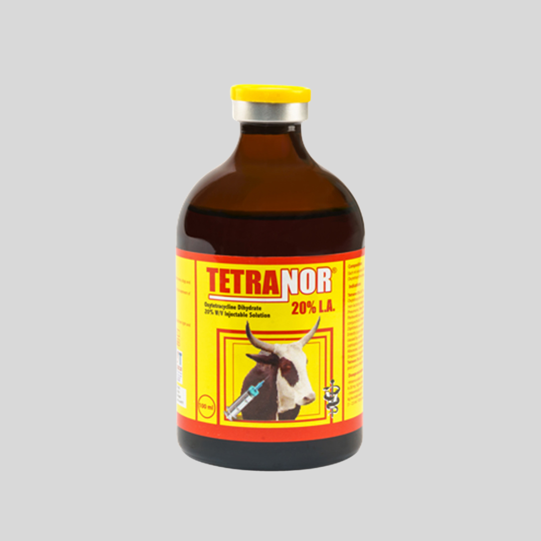 Tetranor is a broad-spectrum injectable antibiotic containing oxytetracycline, designed to treat and prevent a wide range of bacterial infections in cattle, sheep, and poultry. Its rapid absorption and multi-species application make it an essential tool for maintaining livestock and poultry health.