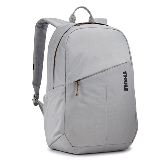 Eco 20L student survival pack — Thule recycled 600D; elevated 16" MacBook pocket; side bottles; slip access. Sustainable daily hauler—green, tough, organized!