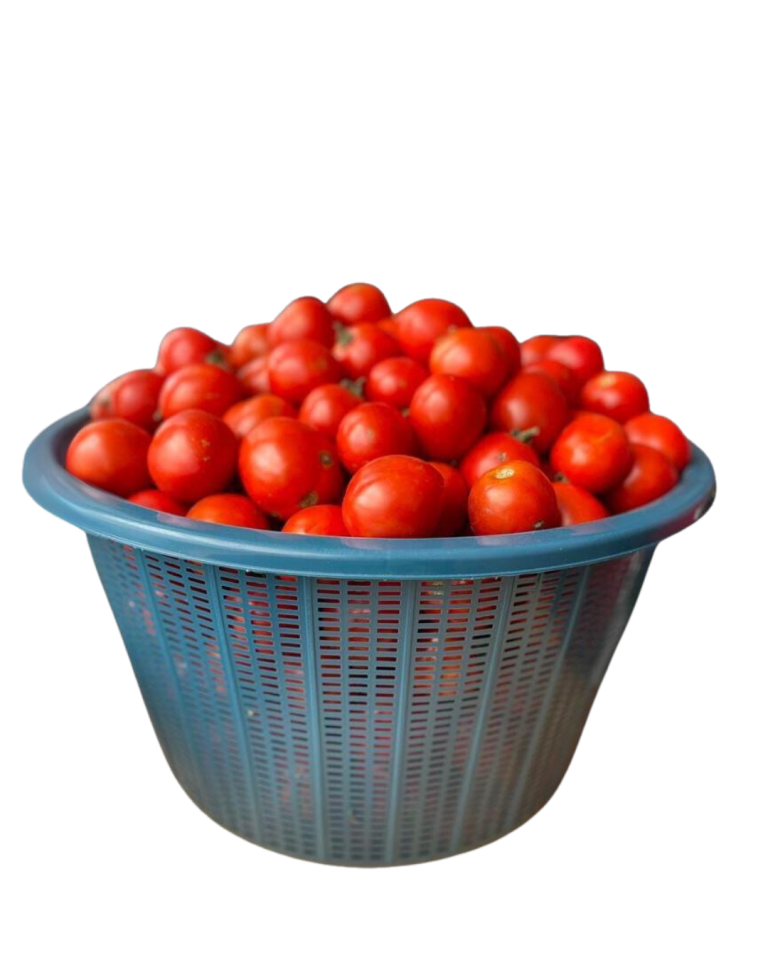 Freshly harvested tomatoes packed in a small basket, ideal for everyday cooking. Great for stews, jollof, soups, and sauces. Carefully picked to ensure quality and freshness.