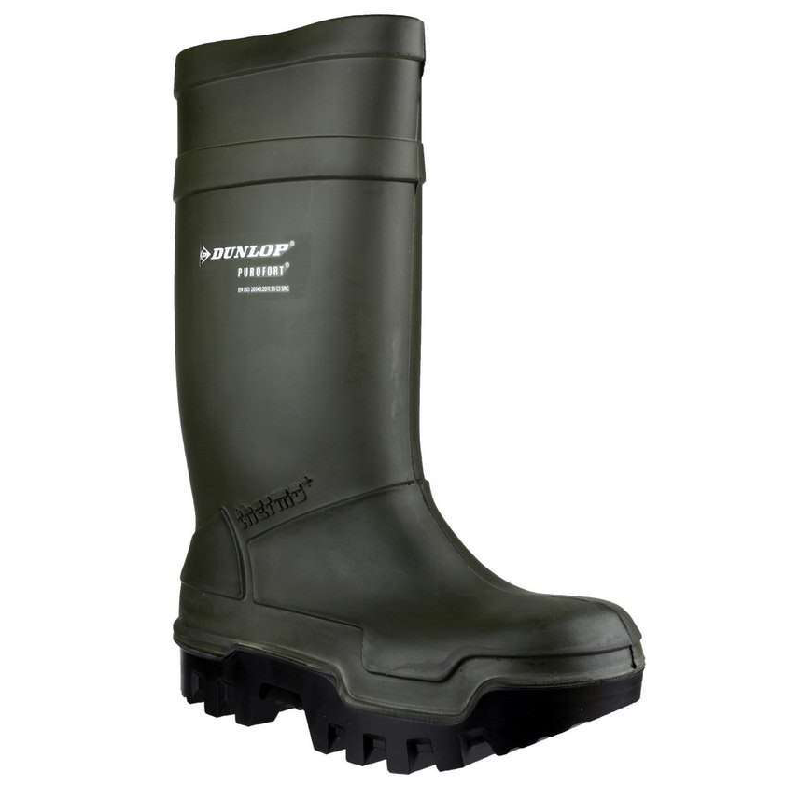The Dunlop Safety Wellington Boot is a high-quality, oil-resistant boot made from durable PVC, designed for tough industrial environments. It features a steel toe for impact protection, energy-absorbing heels for comfort, and a 15-inch height for extended leg coverage. Available in green or black, the boot comes in sizes 38 to 46, with 12 pairs per carton, making it a reliable choice for workplace safety.